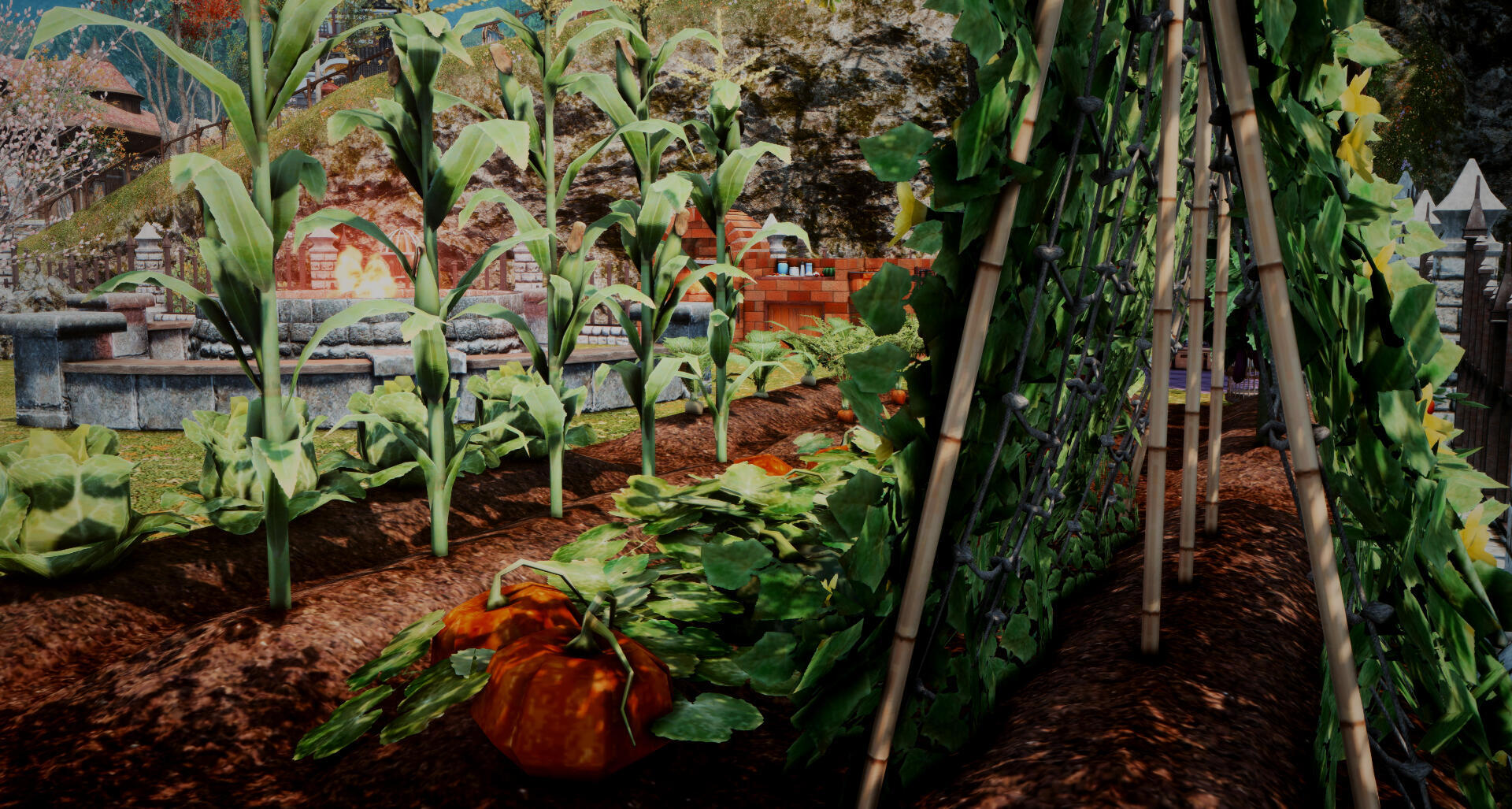 The sorry state of the yard as it had been 'acceptably' maintained by Adder bureaucrats has been improved considerably. The rehabilitation included not only the pruning of unsightly weeds and overgrown ivy, but also the addition of gardening plots both visually pleasing and functional. Supplements to the manor's pantry are grown seasonally upon the grounds in allotments blessed with fertile Gridanian soil. The addition of a firepit, as well as outdoor kitchen and other accoutrements has transformed the yard into a space for relaxation and recreation alike.